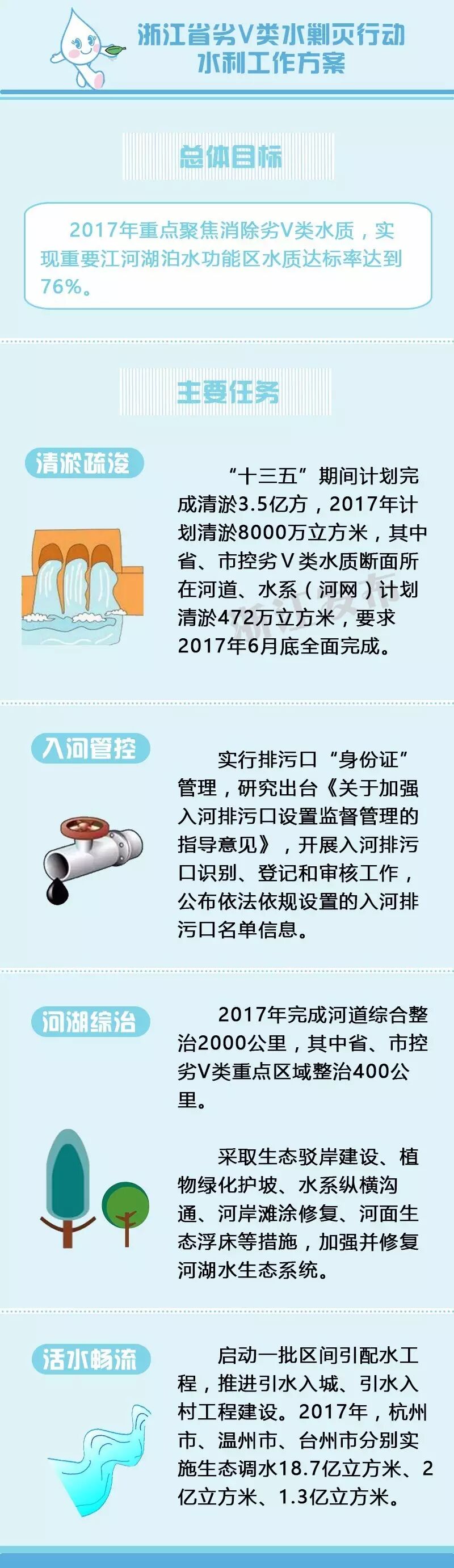 2月6日,浙江省召开全省剿灭劣Ⅴ类水工作会议,对继续全面深化“五水共治”工作进行部署,要求到2017年底全面剿灭劣Ⅴ类水。