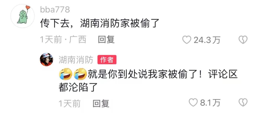视频发出后,迅速引发网友关注,不少人调侃“湖南消防家被偷了”。还有其他地区消防救援队账号留言“连夜给我家草地浇浇水”。