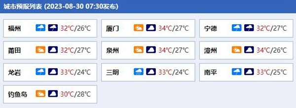 福建各城市预报。(来源:中国天气网)