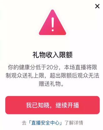 规则显示,如主播健康分低于40分,将无法进入直播间榜单并禁止使用PK功能。如低于20分,将在前述管理措施的基础上关闭礼物功能,主播将无法获得打赏收入,违规收入也将被禁止提现。