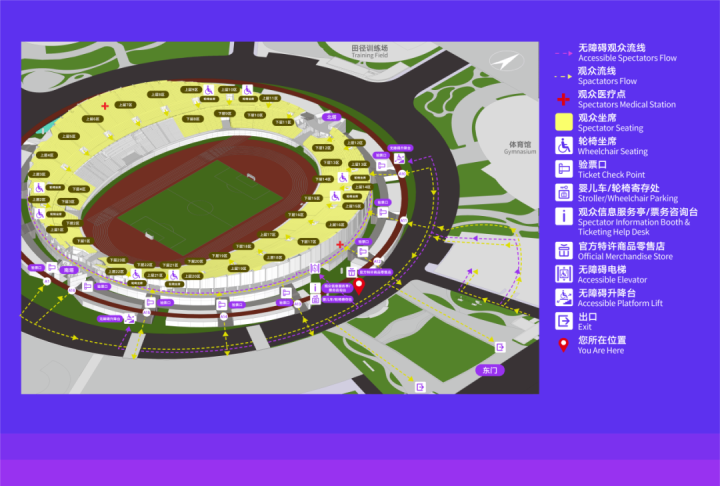 进入黄龙体育场三层看台,黄龙为大家提供了观众信息服务点、餐饮售卖点、母婴室等内容。