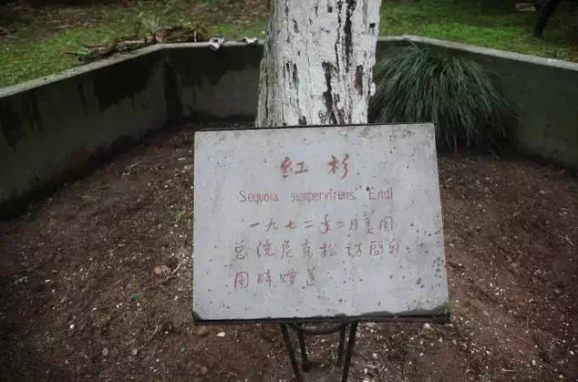 相关历史资料记载,杭州植物园的一位退休园艺工人曾回忆,当时,杭州植物园的园林科研所和园艺工人研究,讨论能不能把这棵红杉的枝条剪下来扦插。第一次试验后,发现成活率较高,便将它移种,并组织开展北美红杉的引种栽培试验研究工作,“后来基辛格和尼克松的女婿也来看过一次,听说他们回去以后还向尼克松总统做了报告,据说尼克松总统听后很满意。”