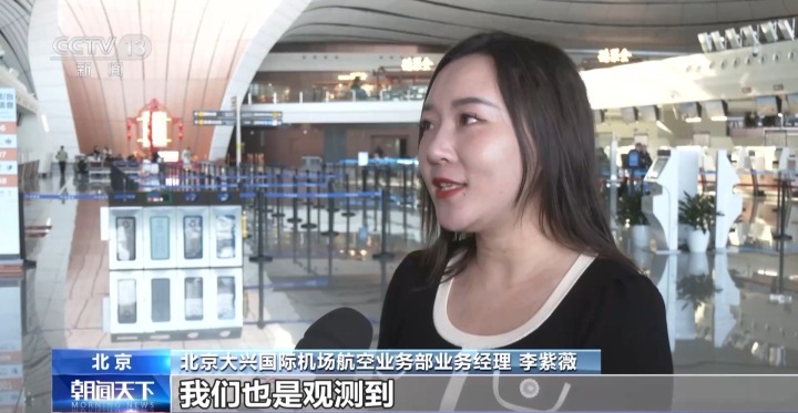 北京大兴国际机场航空业务部业务经理 李紫薇:国际(航线)来看,我们也是观测到伦敦、吉隆坡、东京这些航线的客座率有明显上升。